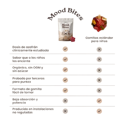 Si tu hijo ya tiene un tratamiento médico prescripto, te recomendamos consultarlo con su pediatra antes de empezar. El azafrán y algunos de los ingredientes de la fórmula pueden interactuar con ciertos medicamentos — especialmente los que actúan sobre la serotonina. Tu pediatra va a poder orientarte sobre si es compatible con el tratamiento actual de tu hijo.