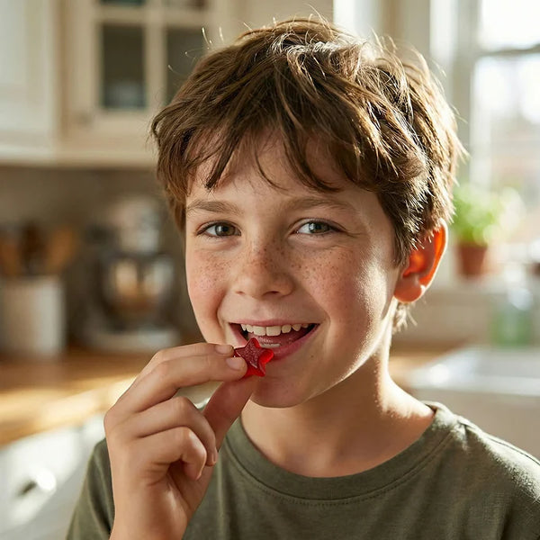 La dosis recomendada es 1 gomita por día, preferentemente a la mañana con el desayuno. Son masticables, de sabor suave, y la mayoría de los chicos las acepta sin problema desde el primer día. No necesitás mezclarlas con nada ni preparar nada especial. Muchos chicos terminan pidiéndolas solos después de la primera semana.